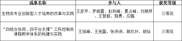 日前,自治区第十届高等教育教学成果奖获奖名单公布,我校王彦芹老师主持的《生物类专业创新型开云体育app(中国)官方网站 的改革与实践》、王旭峰老师主持的《“四结合协同、四平台支撑”工科控制类课程教学体系的构建与实践》教学成果,荣获自治区教学成果三等奖。