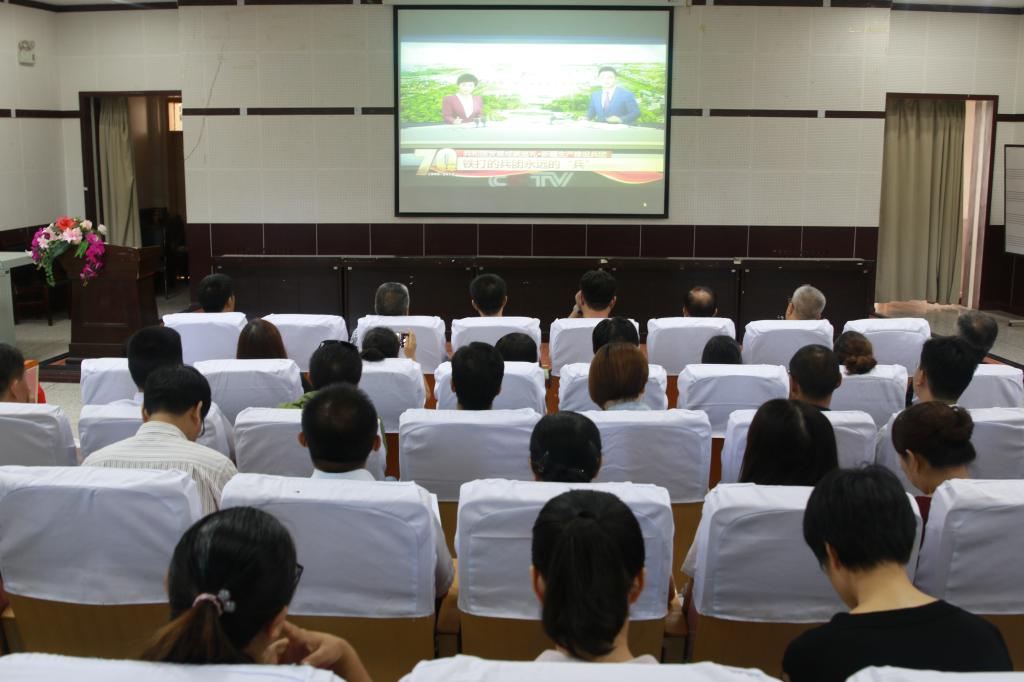 8月22日上午,我校组织干部和教师观看中央电视台新闻频道播出的庆祝新中国成立70周年大型直播特别节目《壮丽70年·奋斗新时代—共和国发展成就巡礼·新疆生产建设兵团篇》。