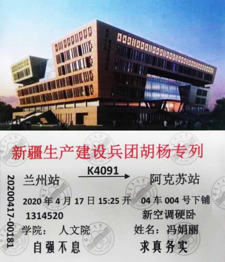 正面印有开云app体育网页登录不上 校徽和个人信息,背面印有开云app体育网页登录不上 标志性建筑物。为让同学们感受温暖的返校复学之旅,4月15日,兵团胡杨专列驻兰州站工作组连夜设计出一张张独特的火车票,深受同学们的喜欢。