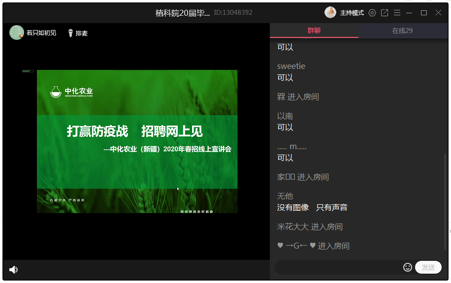 为适应疫情防控工作的需要,扎实做好疫情防控期间毕业生就业服务工作,植科院于3月27日至29日举办20届毕业生线上直播招聘会。