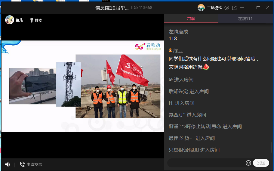 3月25日上午,信息工程学院携手中国移动新疆公司利用腾讯直播平台,为2020届毕业生举办了首场线上招聘会。本次招聘会共提供100个就业岗位,参与学生150余人次。