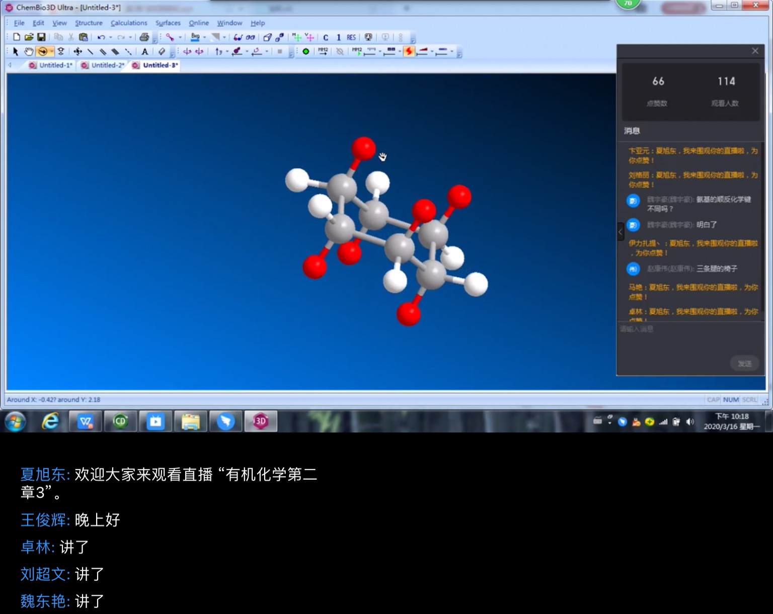 “线上教学缺乏面对面的互动和交流,而专业软件可以画出一系列复杂的化合物结构,用它来辅助教学,可以很好的改变线上授课这一问题。”夏旭东老师总结他的教学经验时这样说。“课前,我会提前发布学习要点,让同学们提前熟悉知识点,课堂中我也会随机画出有机化合物,让同学们辨识并讲解,课后我会指定化合物,让同学们画出结构,让同学们在学中画,在画中学”。