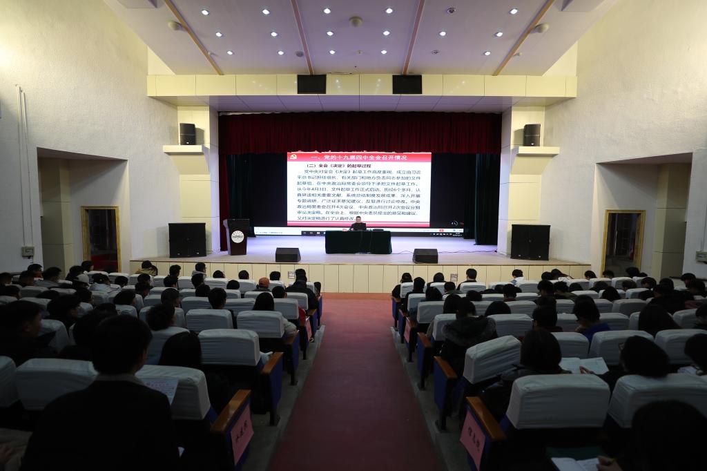 12月11日下午,学校宣讲团成员、党委宣传部部长王志刚,在大学生活动中心,宣讲党的十九届四中全会精神。校、院学生干部代表300余人听取宣讲。