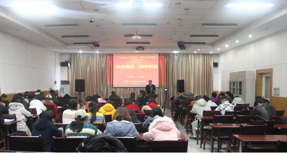 根据学院“不忘初心、牢记使命”主题教育安排,11月24日下午,王合理教授在老植科楼四楼多功能报告厅作了题为“坚定信念 坚守职责”主题教育专题报告。植科院全体教工党员和学生党员参加。报告会由学院党委书记蒋学玮主持。
