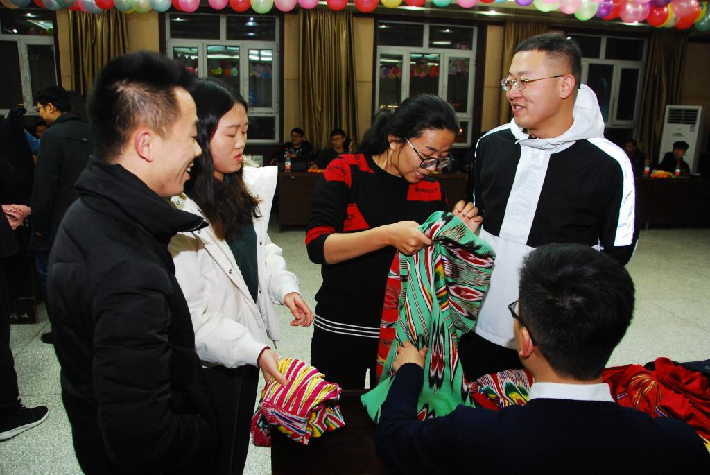 晚上21:00,布满彩色气球和彩带的活动现场,迎来了盛装打扮的青年男女。活动在由王兰老师等表演的开场舞《民族团结一家亲》中拉开序幕。教务处副处长龚䶮主持的“心心相印”节目,通过现场挑选3对单身男女模拟男女朋友逛街购物情景,传达服饰文化、穿衣搭配,对男女朋友交往相处遇到的问题作了细心的解答。“缘来是你”“心有灵犀”等互动主题游戏,使男女青年加深相互了解,完成从陌生到熟悉的转变。全场气氛达到高潮,勇敢热情的男青年邀请心仪的女青年翩翩起舞,开启了一场活泼有趣、温馨浪漫的约会。