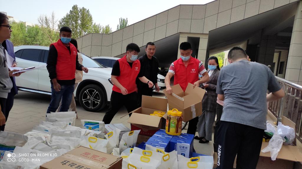 志愿者帮助分发节日慰问品