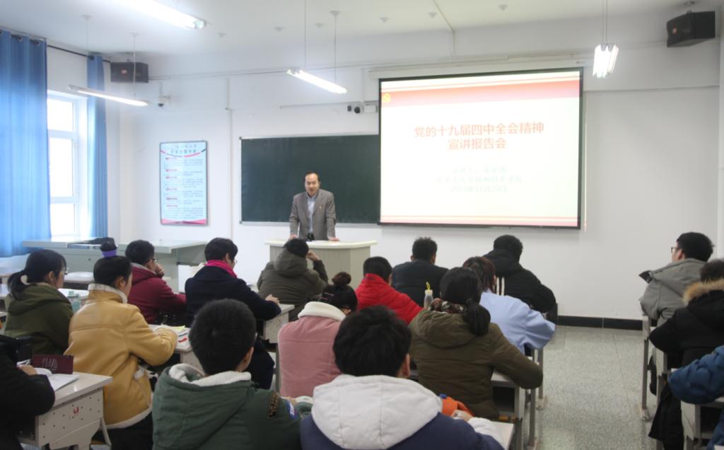 根据学院“不忘初心、牢记使命”主题教育安排,11月29日,植科院党委书记蒋学玮走进林学21班,宣讲党的十九届四中全会精神,为全体学生带来了一堂生动的党课。宣讲在综合楼222教室进行。