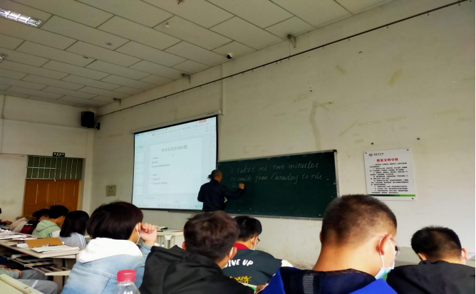 在教学过程中,闫教授秉承一份对职业和教育信念的初心,以最大的诚心面对课堂和学生,课上,教学一丝不苟;课下,相处平易近人。为了熟悉这里的教学模式,了解学生的学习程度,他尝试多种方式备课,尽可能做到由易到难、详尽细致。除了理论知识的传授,他更注重培养学生英语实践能力,每堂课都设计口语表达和应用写作练习。