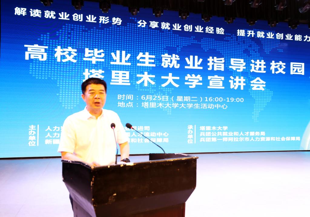 6月25日下午,人社部全国人才流动中心党委书记、主任王建华,率领人社部全国人才流动中心、兵团人力资源和社会保障局、第一师阿拉尔市人力资源和社会保障局相关负责同志来校开展高校毕业生就业指导进校园宣讲活动。