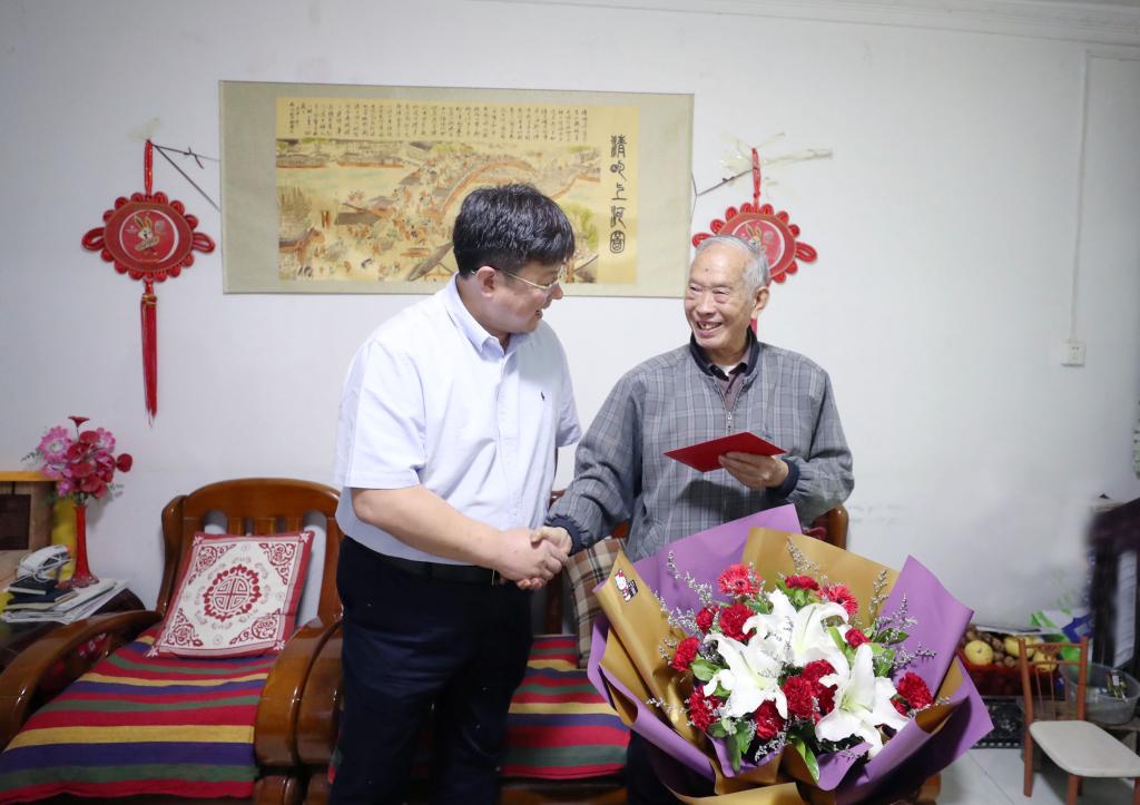 在退休老教师、老干部程焕良家中,校领导详细询问了老人家的身体健康状况、日常生活情况,向他介绍了学校的发展近况,并对以程焕良为代表的离退休老同志为学校60年来的发展做出的贡献表示衷心感谢,祝愿他老人家健康长寿。程焕良对学校的关心和慰问表示感谢,并祝愿学校未来发展得更加美好。