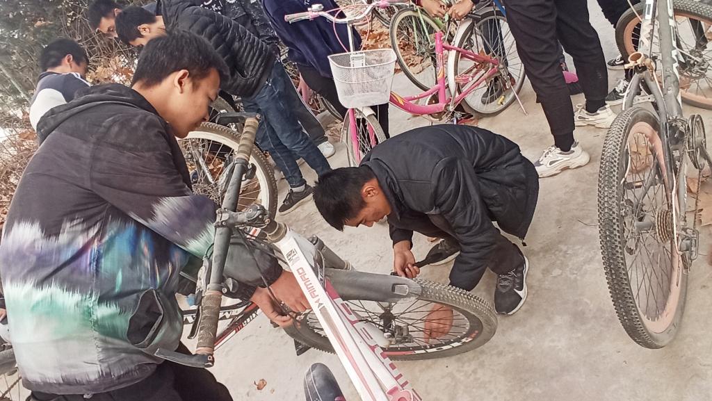 活动中,学生党支部的党员对工科楼后的大片落叶进行集中清扫,为建设文明校园贡献微薄之力。针对博雅楼、知行楼、尚德楼、蕙心楼学生宿舍区楼前的废弃自行车统一收集整理。并发挥自己的专业特长,对废旧自行车进行组装改装。本次重组改装的自行车,将用于明年的慈善义卖,帮助家庭贫困学生。