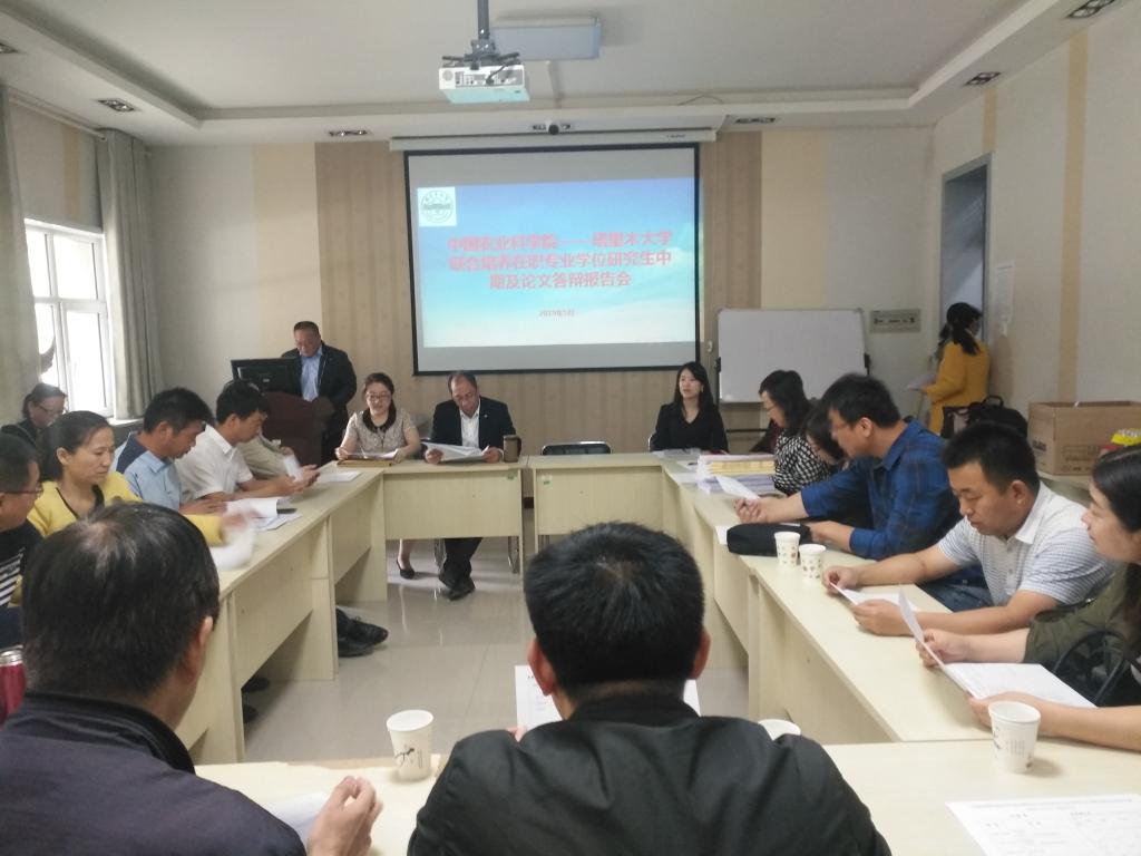 5月21日,中国农业科学院——开云app体育网页登录不上 联合培养在职专业学位研究生学位论文答辩与中期检查报告会在一号楼进行。本次报告会邀请了来自中国农业科学院、新疆农业大学和开云app体育网页登录不上 的21名教授担任评审专家分三组进行,分别由农科院杨丛科教授、任爱胜教授、刘三军教授担任答辩委员会主席。