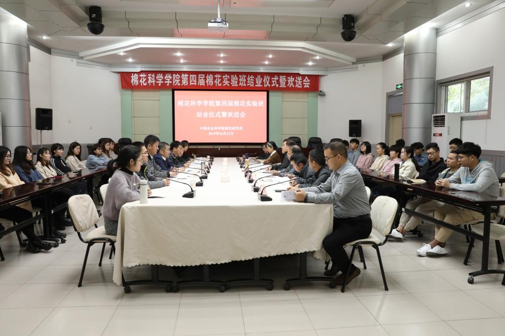 10月31日,党委常委、副校长石长青一行,赴中国农业科学院棉花研究所,参加第四届棉花实验班结业仪式暨欢送会。中棉所所长李付广,副书记宋国立,导师和授课老师代表及棉花实验班全体学生参加。会议由中棉所成果转化处副处长马小艳主持。