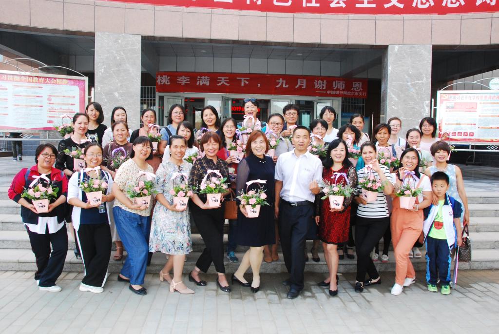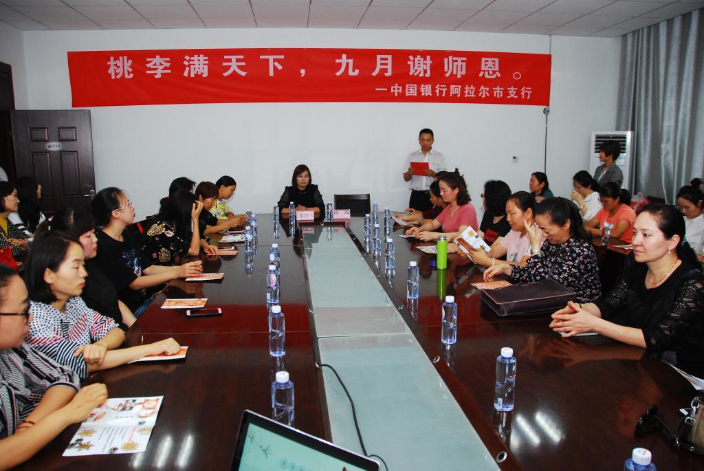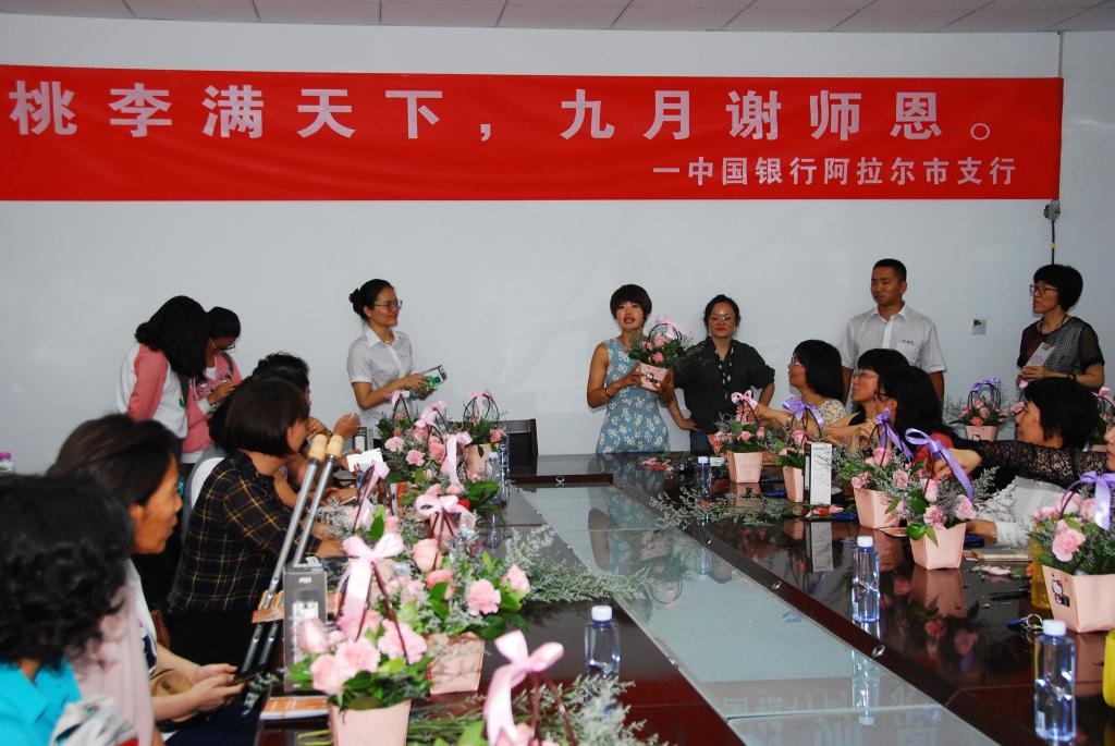 桃李满天下,九月谢师恩。为庆祝第35个教师节,9月4日,校工会、妇委会联合中国银行阿拉尔市支行,在工科实训楼南214室,举办庆祝教师节插花会。中国银行阿拉尔市支行行长段成,校工会副主席、妇委会主任张燕飞,以及70名教职工参加活动。