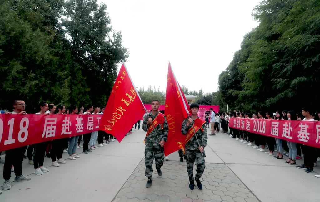2018届优秀毕业生赴南疆兵团基层“三支一扶”出征仪式举行。/赵双喜