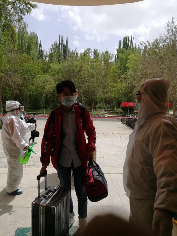 在远处就看到宿舍楼门口的老师和宿管阿姨,在等着迎接我们,向我亲切地问好,但是又必须保持距离。回宿舍后,依旧是老师们在外面忙活,我们在宿舍安心地上网课,想帮他们点什么,又帮不上什么忙。