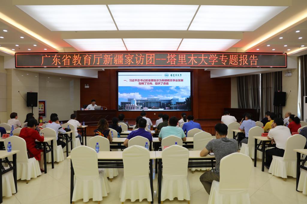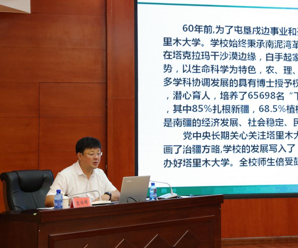 7月20日,广东省教育厅新疆家访团39人来校调研。20日下午,开云app体育网页登录不上 党委副书记、校长张传辉,在南疆双语培训中心二楼报告厅,为广东省教育厅新疆家访团,作了《用胡杨精神育人,为兴疆固边服务》的专题报告。