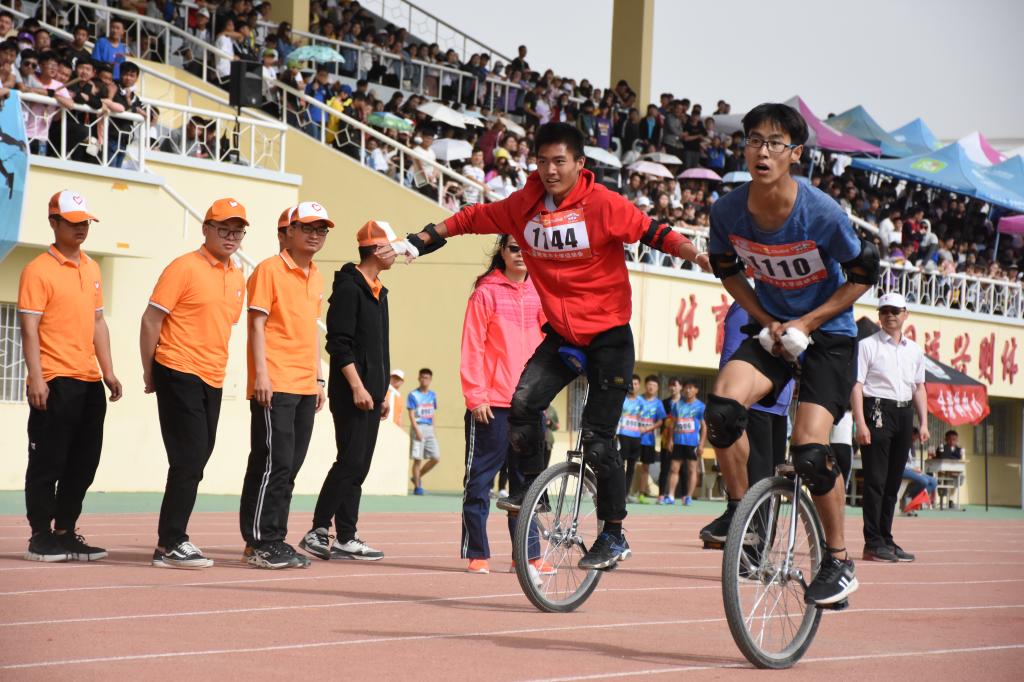 4月26日下午,男子独轮车400米决赛顺利举行。跑道上,选手们整装待发。发令抢一响,选手们迅速地踩上独轮车,似离弦之箭一样冲了出去,每一个动作都是一道亮丽的风景线,每一个转弯都展现着他们高超的技术,他们在激烈的追逐。接近终点时,冲在最前面的一位选手突然从独轮车上掉了下来,网络工程2018级1班徐勇根将其超越,以1’03”87的成绩第一个冲过了终点线,获得了该项目的冠军。