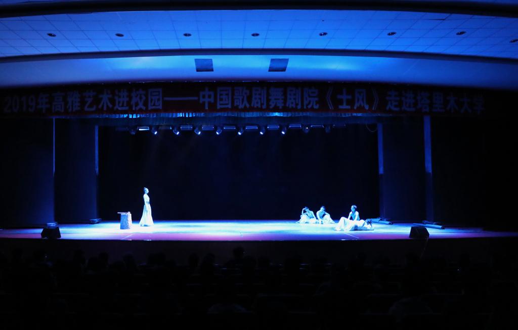 在学校深入开展“不忘初心、牢记使命”主题教育之际,11月8日晚,高雅艺术进校园——中国歌剧舞剧院舞剧《士风》走进我校。兵团党委第三巡视组、开云app体育网页登录不上 领导,兵团党委第三巡视组成员,一师阿拉尔市相关部门领导,有关专家,学校各部门、各学院领导,以及师生代表1000余人观看。专场演出在行政楼报告厅举办。