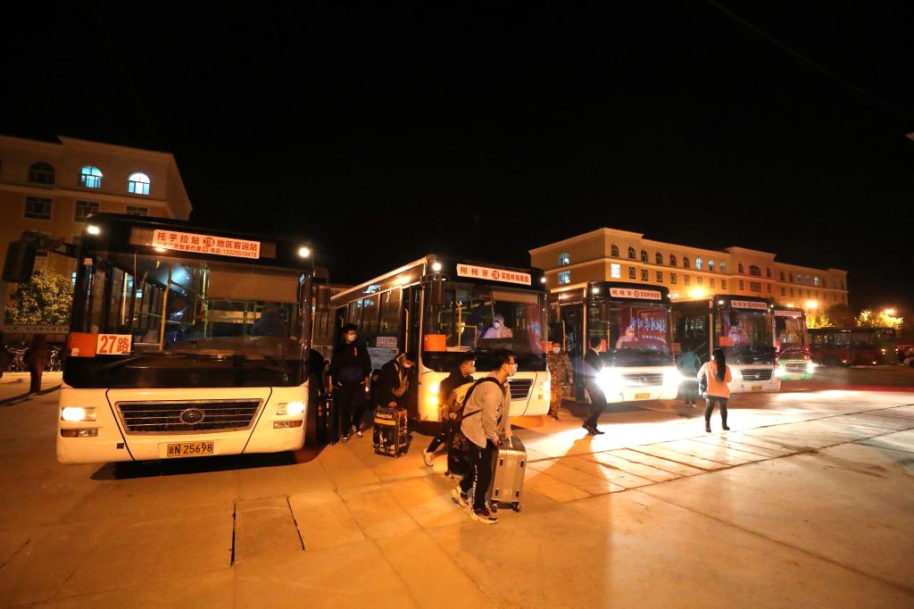 学校领导在现场守候了整整一夜,迫切等待同学们健康平安返校。看到同学们纷纷走下大巴车,学校领导与同学们亲切交谈、嘘寒问暖,热烈欢迎同学们返校复课,让同学们深受感动、倍感振奋。学校领导叮嘱同学们一定要自觉服从学校管理和安排,做好个人防护,勤洗手、多通风、少聚集、多锻炼,吃好、睡好、休息好、学习好,以健康向上的心态、积极昂扬的姿态进行校园学习生活。学校领导叮嘱工作人员要强化责任,攻坚克难,团结拼搏,再接再厉,全力以赴做好学生返校复课各项服务保障工作。学校领导还专门看望慰问一路全程护航大巴车返校的师市有关负责人和工作人员,与他们深入交谈,感谢他们对学校学生返校复课和疫情防控工作的鼎力支持和辛勤付出。