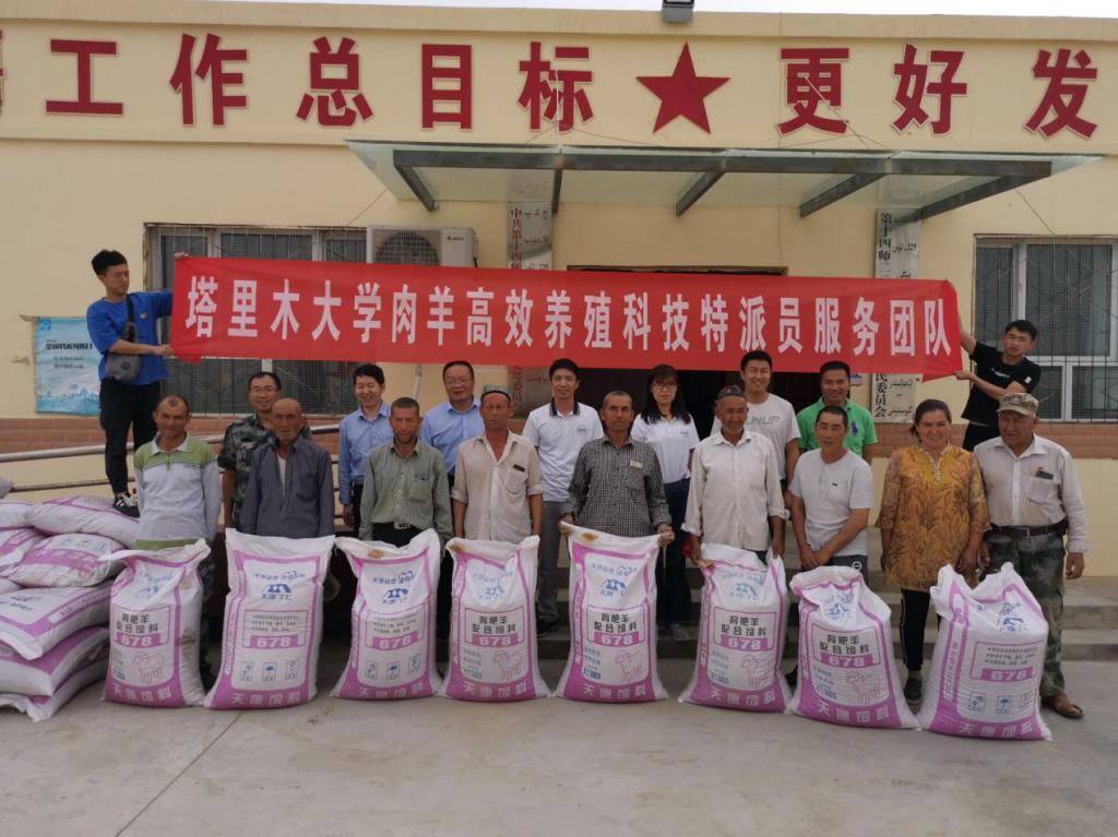 6月3日,肉羊高效养殖科技特派员服务团队,来到225团民航新村,与我校“访惠聚”工作队一道向养殖户捐赠了8吨羊全价颗粒饲料。走访了10余户肉羊养殖户,了解养殖情况,并进行养殖技术培训。团队选择了3个养殖户作为试点,计划购买4只种公羊,进行肉羊品种改良,提高繁殖效率和羊肉品质。