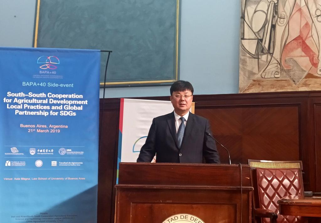 2019年3月21日,作为“一带一路”南南合作农业教育科技创新联盟成员单位,我校党委副书记、校长张传辉教授赴阿根廷出席第二届联合国南南合作高级别会议(BAPA+40)边会及“一带一路”南南合作农业教育科技创新联盟推进全球南南农业合作工作研讨会。