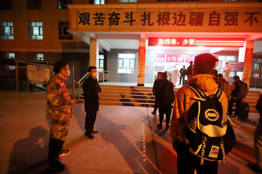 赵光辉代表学校党委对同学们顺利返校表示欢迎,对兵团党委的亲切关怀和师市党委的支持帮助表示感谢。在大家的充分准备和共同努力下,今天,我们的第一批内地学生顺利返回学校,开始校园的学习生活。希望同学们做好个人防护,勤洗手、多通风、多锻炼,注意营养。希望同学们自觉服从管理,以健康向上的心态、积极昂扬的姿态进行学习生活。希望同学们刻苦学习,积极锻炼,努力在为人民服务中茁壮成长、在艰苦奋斗中砥砺意志品质、在实践中增长工作本领,让青春在党和人民最需要的地方绽放绚丽之花。