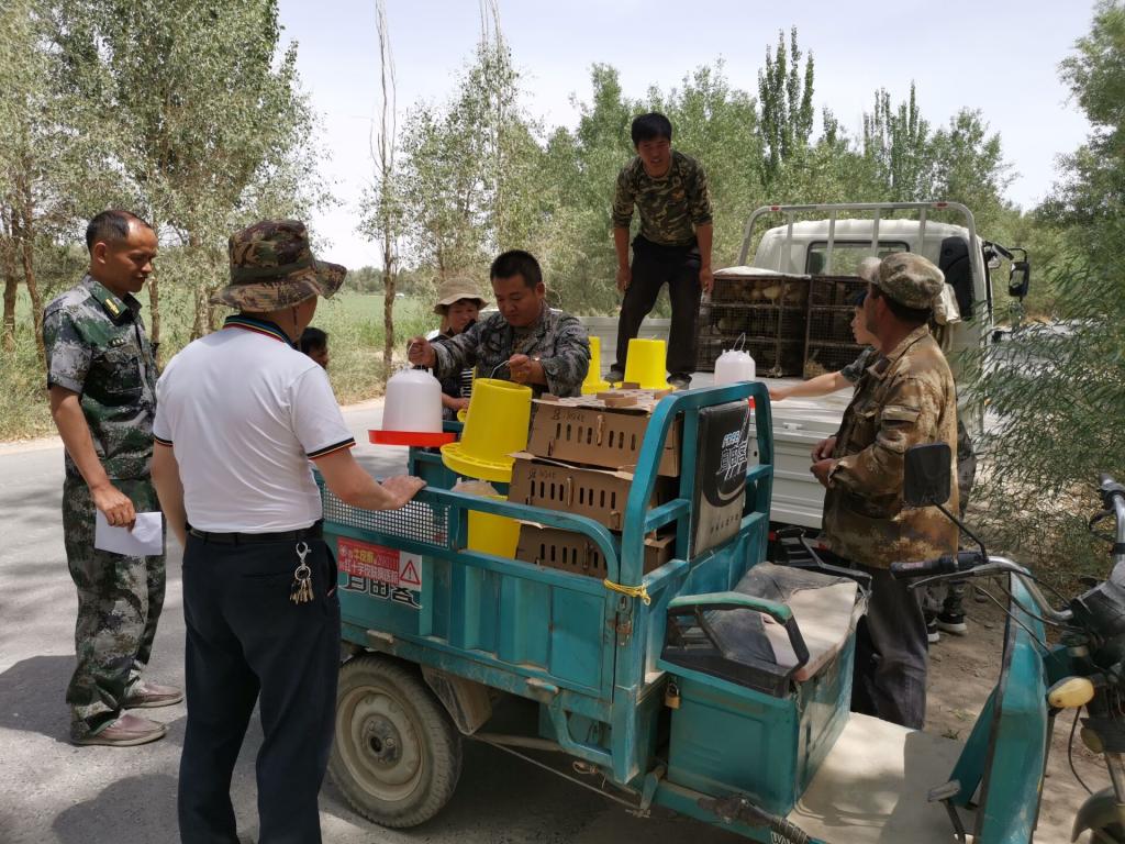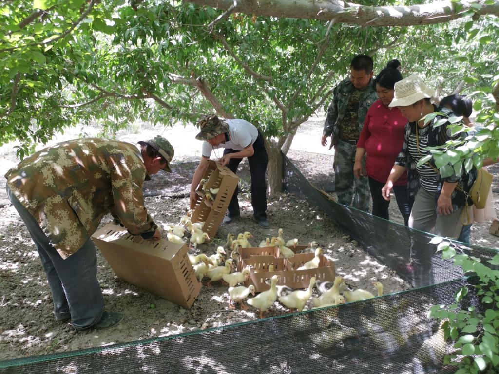 6月2日,动物科学学院副院长任道全一行,带着330只鹅苗来到11团6连,与工作队一起将林下养殖项目送到职工手中。