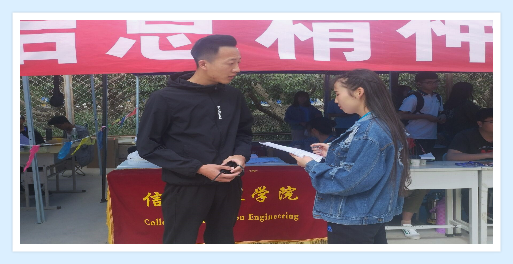 3、记者:这是您第一次当志愿者吗?这次当校运会志愿者最大的收获是什么?