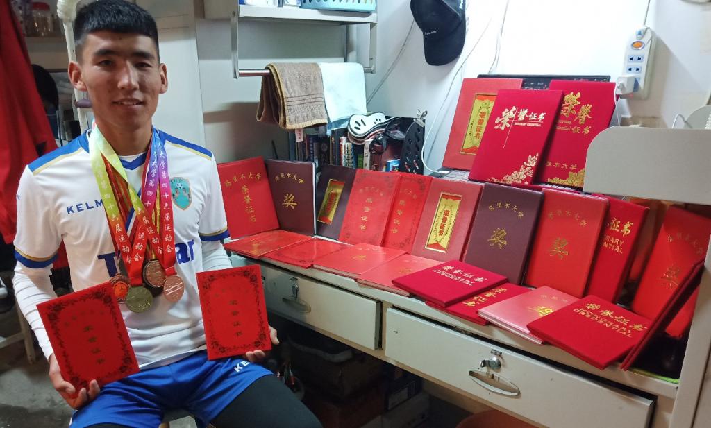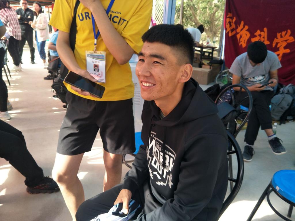 均马别克:我在院运动会报的项目都拿了第一,然后就觉得自己有这方面的特长,就开始有规律的训练,想着到校运会这个更大的舞台上参加比赛,挑战自己。我也没想到我能取得现在的成绩,这已经是我第四次参加校运会了,平时始终都没放弃过训练。