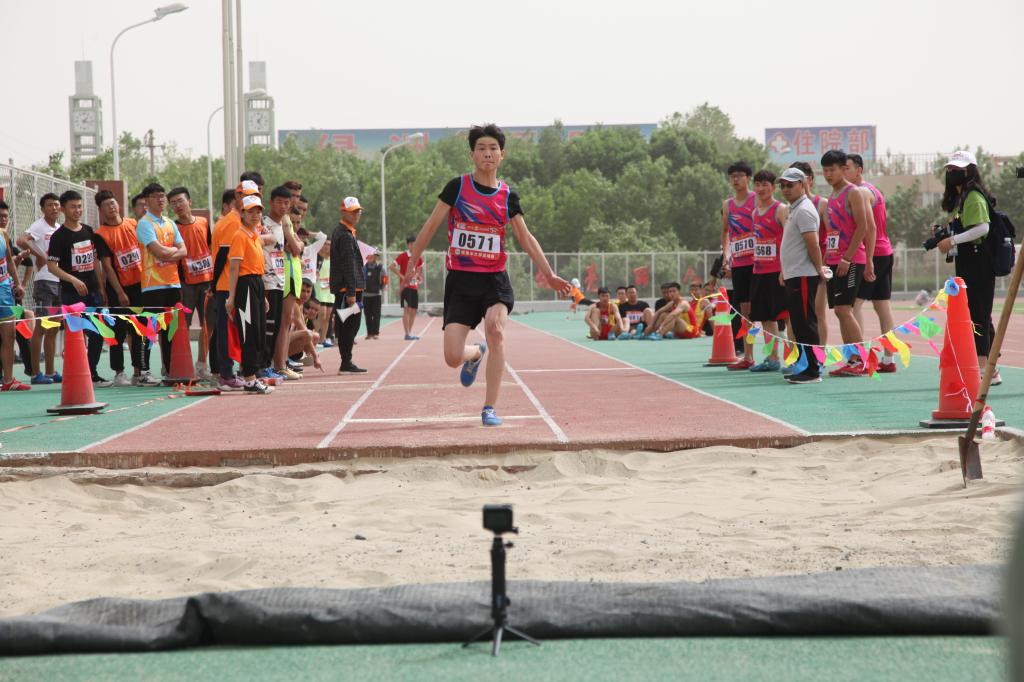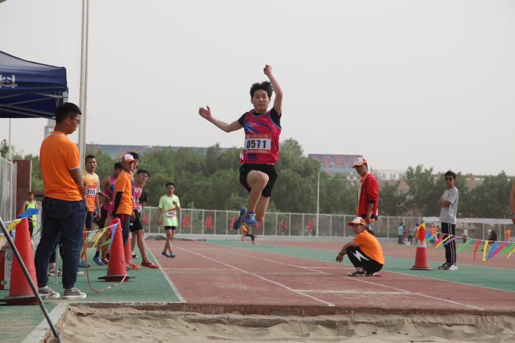 4月26日下午,在开云app体育网页登录不上 46届运动会男子组三级跳远预决赛上,生命科学学院赵晨曦同学以12.97的成绩夺冠。