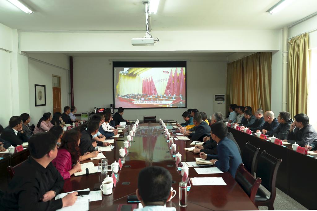 党委书记赵光辉,党委副书记、校长张传辉,副校长张利莉,以及党政机关部门负责人、各学院党委书记或院长、学校直属单位负责人在行政楼317室,集中收听收看纪念五四运动100周年大会现场直播,深入学习领会习近平总书记在纪念五四运动100周年大会上的重要讲话精神。大会结束后,大家展开深入座谈交流,纷纷谈学习感受体会。