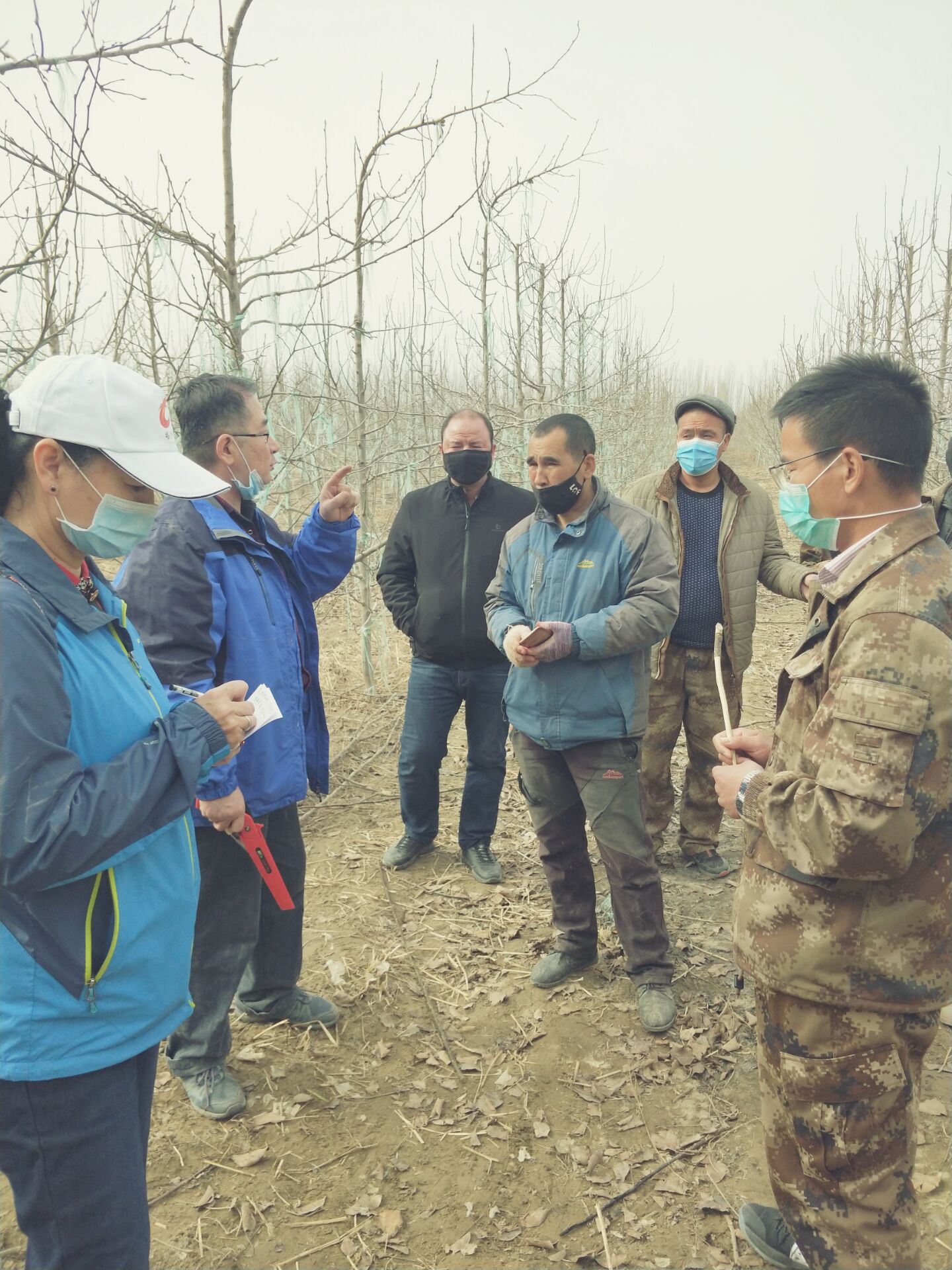 针对梨树如何修剪、如何施肥、灌水、防止病虫害等问题,六连支部和工作队邀请张琦教授为农户解决这些难题。作为多年从事一线林果业教学实践的老教师,张琦教授始终牵挂着农户和农业生产。听说农户家的梨树管理遇到了问题,他立即赶到生产一线进行技术指导。张琦一下车就直奔主干形香梨示范基地,拿着剪枝剪,手把手,教农户学习掌握香梨主干形冬春修剪、落头、控高、拉枝方法、高位嫁接和人工授粉等种植管理技术。