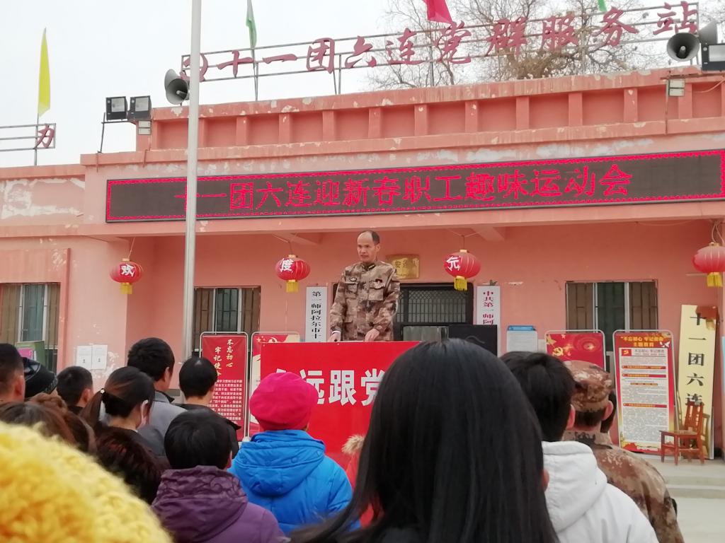上午11时,全连各族职工集聚连部,举行职工趣味运动会。连队第一书记、“访惠聚”工作队队长秦泽洪代表六连党支部向全体职工群众致以新春的祝福。他说,2019年是连队持续良好发展势头的一年,是全体干部职工迎接挑战、经受考验、努力克服困难、出色完成全年任务的一年。过去的成绩凝聚着大家的心血和汗水,未来的机遇和挑战,需要我们继续不懈努力,抓住大好机遇,紧盯团场综合配套改革,以高度的紧迫感和使命感推进连队持续发展。随后,趣味体育活动正式拉开帷幕。