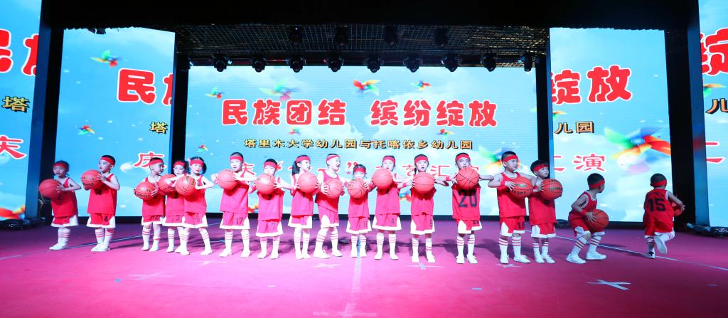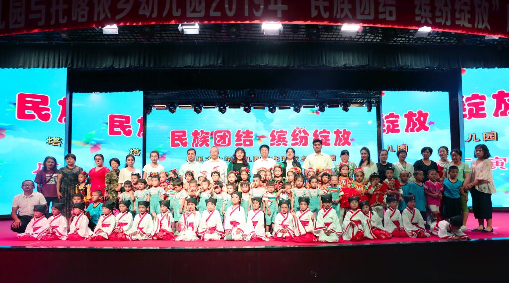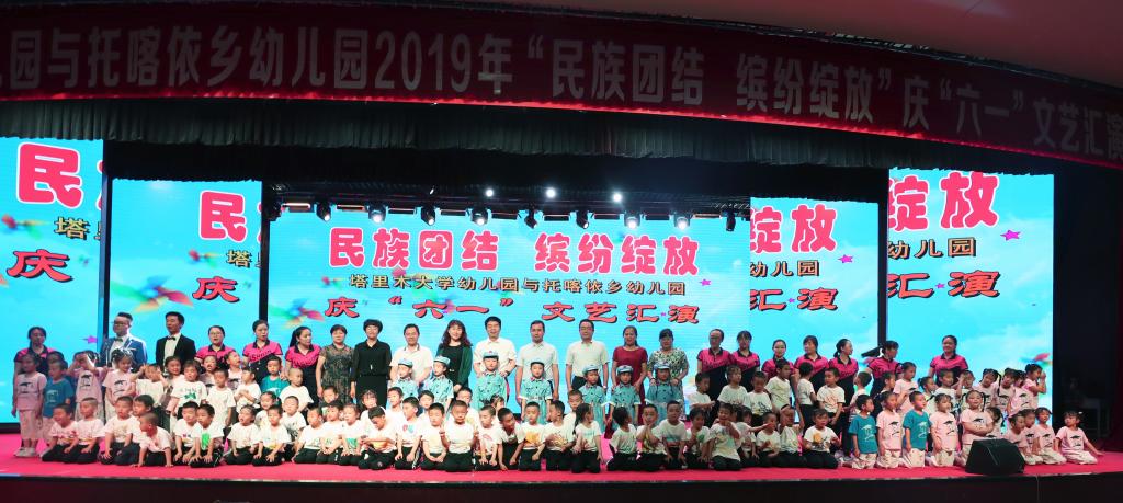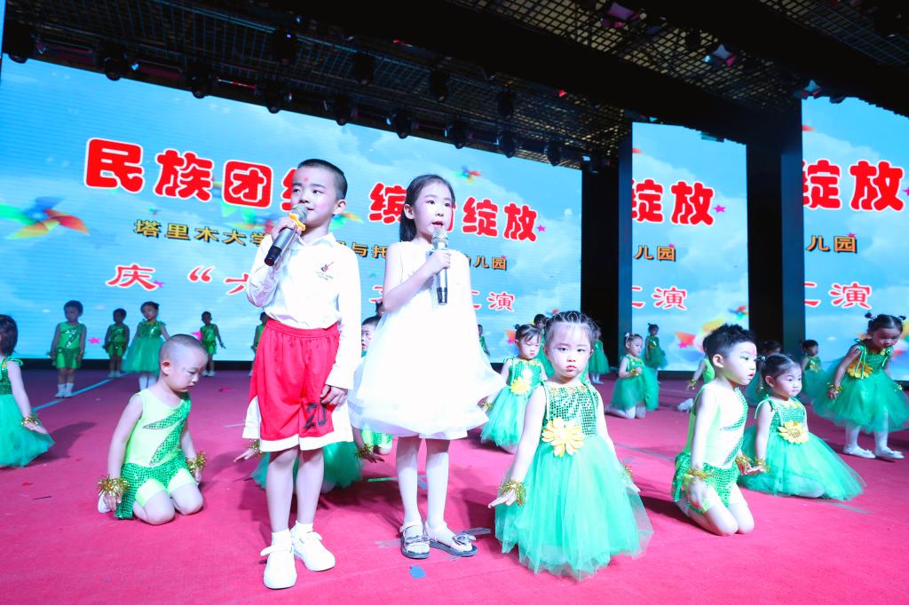上午十点,开云app体育网页登录不上 幼儿园与托喀依乡幼儿园共庆“六一”儿童节“民族团结缤纷绽放”主题文艺汇演在行政楼报告厅举办。开云app体育网页登录不上 党委书记赵光辉,一师党委常委、副师长马荣华,开云app体育网页登录不上 副校长张利莉,党委常委、副校长曲义勇,一师科技局副局长、托喀依乡党委副书记、乡长艾尼瓦尔·玉素普,托喀依乡乡长阿布都·吐尔逊,各学院、机关部门领导,幼儿园全体师生及家长1000余人观看演出。