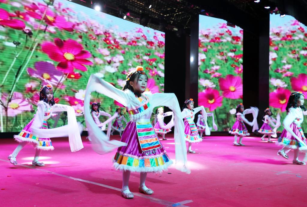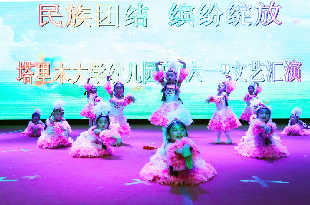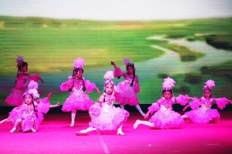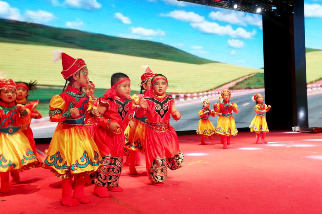 哈萨克族舞蹈《黑走马》,维吾尔族舞蹈《娃哈哈》、《共庆六一》,傣族舞《竹林深处》,藏族舞《幸福格桑花》,蒙古舞《草原小骏马》,各民族小朋友同台演出,情感真挚浓厚,一颗颗民族团结的种子播撒在幼小的心田,将使孩子们在未来人生路上更加绚丽多彩。