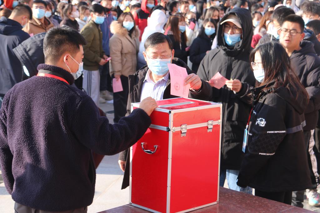 为便于选民参加选举,学校共设4个选区于21日上午11时同时进行选举。党委书记赵光辉,党委副书记、校长张传辉,党委副书记、纪委书记单洪山,党委副书记张爱萍,党委常委、副校长曲义勇、于军以选民身份参加第一选区选举大会,带头投票选举。
