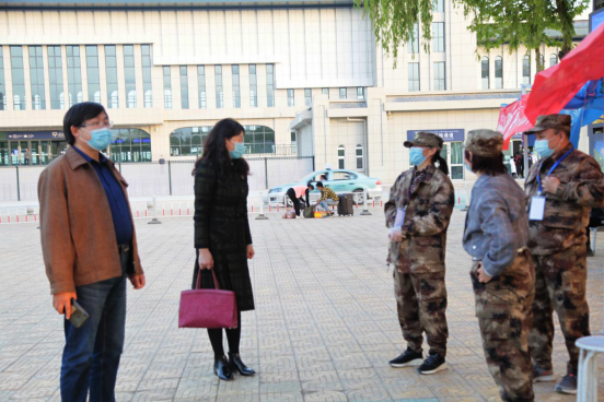 在接站服务处,张利莉详细了解学生返校情况和接站流程,感谢工作人员连日来的坚守奋战和辛勤付出。叮嘱大家要增强防护意识,做好自身防护,把同学们安全顺利地接回学校,确保学校返校复课工作有条不紊地进行。