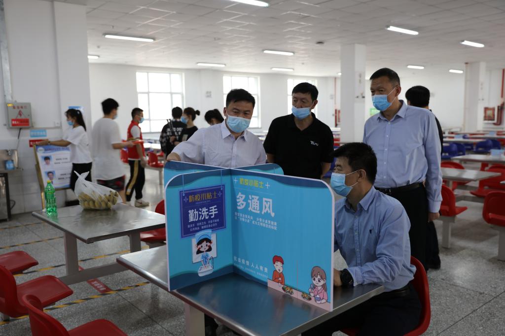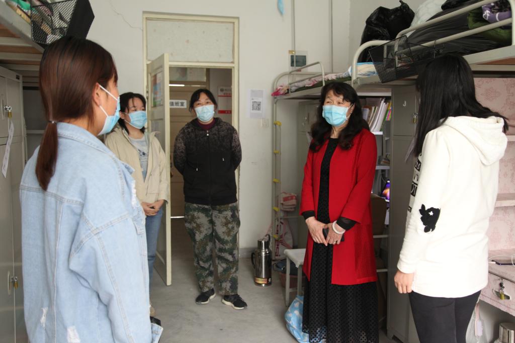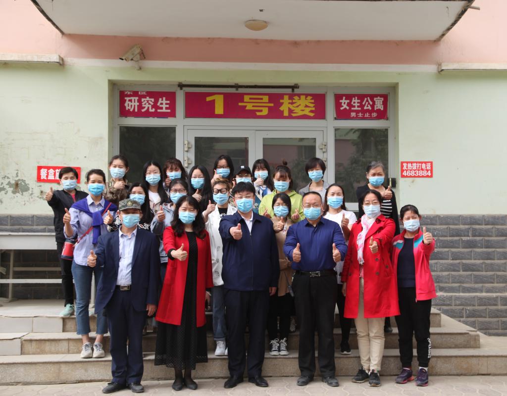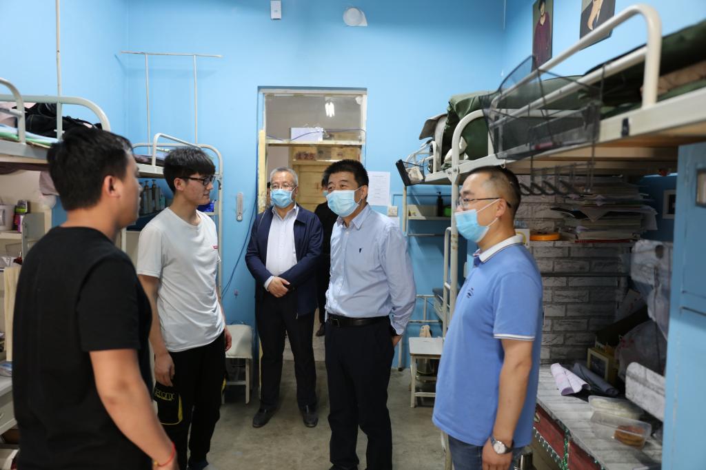 5月7日下午,党委书记赵光辉,党委副书记、校长张传辉,党委副书记、纪委书记单洪山,党委副书记张爱萍,党委常委、副校长卢光志,副校长张利莉,党委常委、副校长曲义勇、于军、石长青,校长助理钱令波,分组深入各学院、来到各宿舍楼、食堂、市场等处,检查指导返校返学和疫情防控工作,亲切走访看望返校学生和教职工、安保人员、医护人员、保洁人员等一线工作人员。