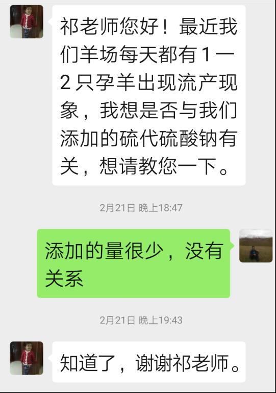 “祁老师您好!最近我们羊场每天都有1-2只孕羊出现流产现象,我想是否与我们添加的硫代硫酸钠有关,想请教您一下。”2月21日晚,开云app体育网页登录不上 动物科学学院祁成年教授收到墨玉县喀尔赛乡的一个扶贫羊场技术人员的微信。