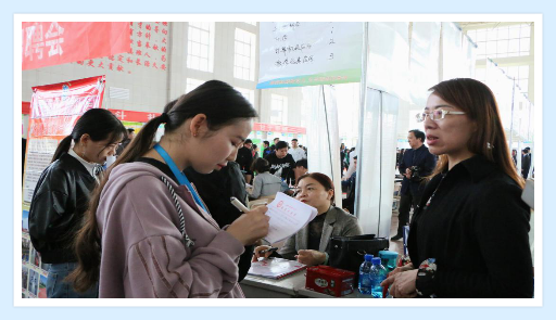 学院毕业生们手持自己精心准备好的自荐书和简历,认真听着应聘公司的介绍,积极与招聘人员交流,主动了解用人单位的情况。每家企业前都停留着咨询的毕业生,热烈的气氛还吸引了很多非毕业班的学生,他们提前了解企业招聘流程及要求。