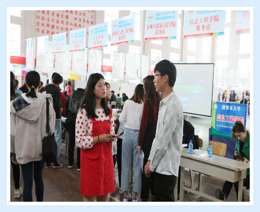 4月11-12日校园春季招聘会期间,会场内外的气氛异常火爆,近300家用人单位、3000多名毕业生汇集在一起。信息工程学院高度重视此次招聘会,积极组织动员2019届毕业生参加招聘会。院党委书记周保平、党委副书记张丽娟、学生办公室主任古翠英、19届毕业班班主任以及学生办公室全体辅导员来到招聘会现场,与用人单位进行交流,详细了解用人单位招聘情况和需求,鼓励毕业生主动应聘,对学生进行就业指导。