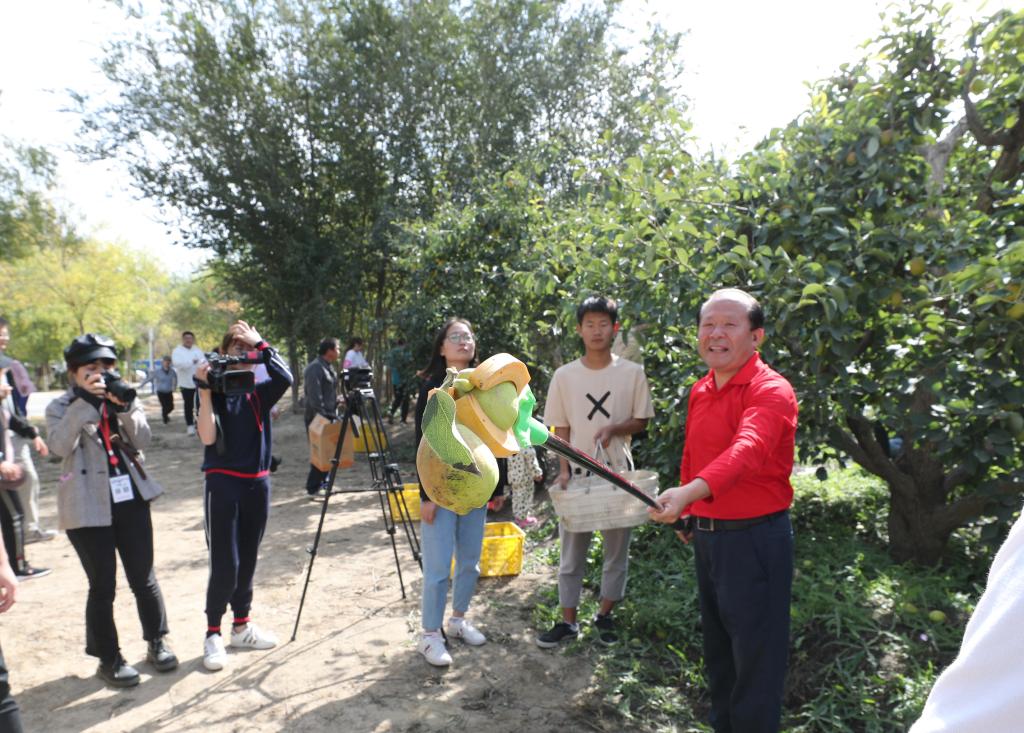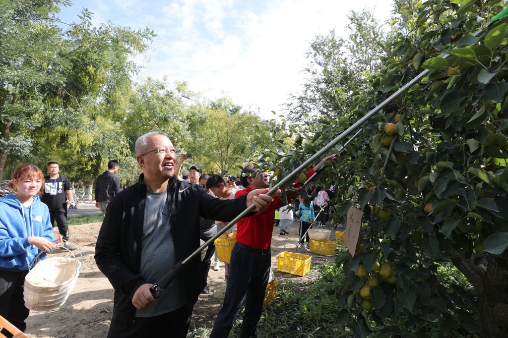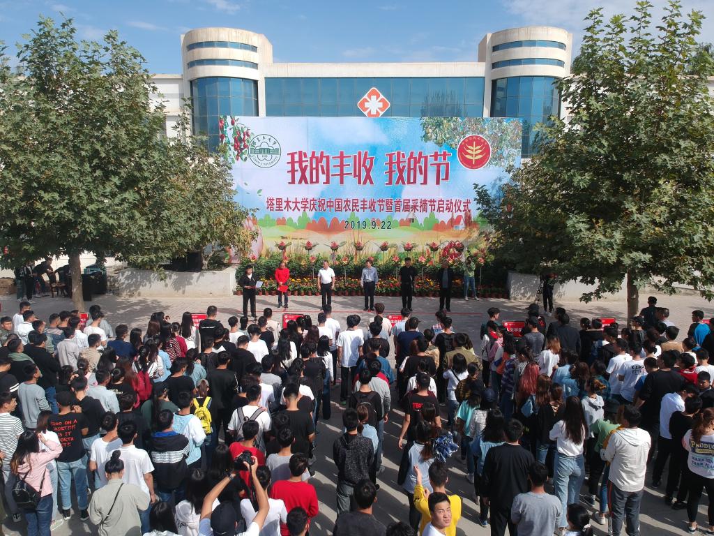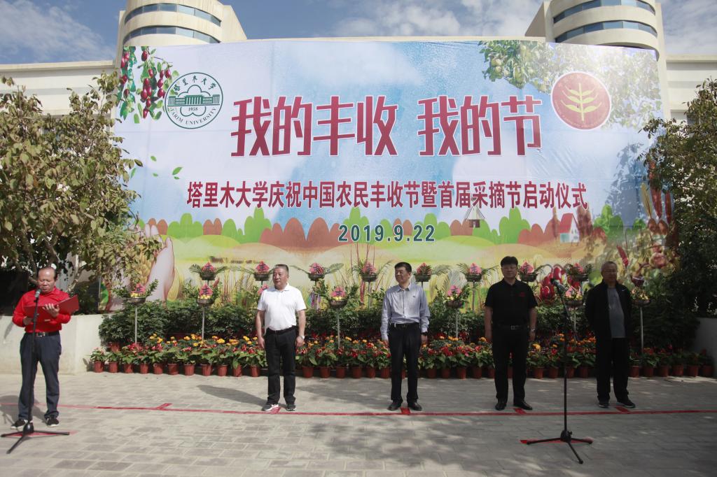 张传辉宣布里木大学庆祝中国农民丰收节暨首届采摘节正式开始,师生有序来到指定区域,开始采摘活动,共同品尝劳动的成果,体验丰收的喜悦。