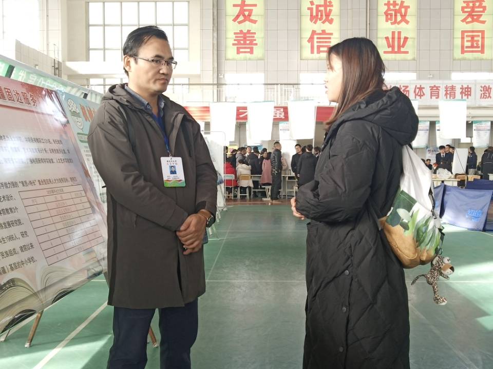 艾力海木·艾尼瓦尔:在这次招聘会前,我给毕业班级上了就业指导课,帮助毕业生树立正确的就业观,引导毕业生到基层、到西部、到祖国最需要的地方建功立业。