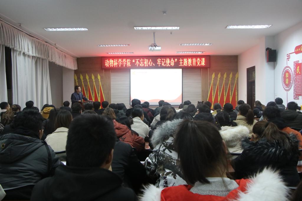 根据学校“不忘初心、牢记使命”主题教育安排,11月27日下午,动科院党委副书记、院长陈伟,副院长任道全在动科院318报告厅,为动科院师生党员上专题党课。动科院全体师生党员参加。