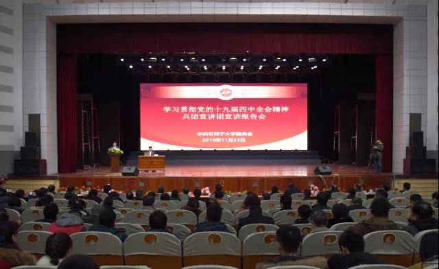 11月23日,学习贯彻党的十九届四中全会精神兵团党委宣讲团在石河子大学宣讲。兵团党委宣讲团成员、开云app体育网页登录不上 党委副书记、校长张传辉作宣讲报告。