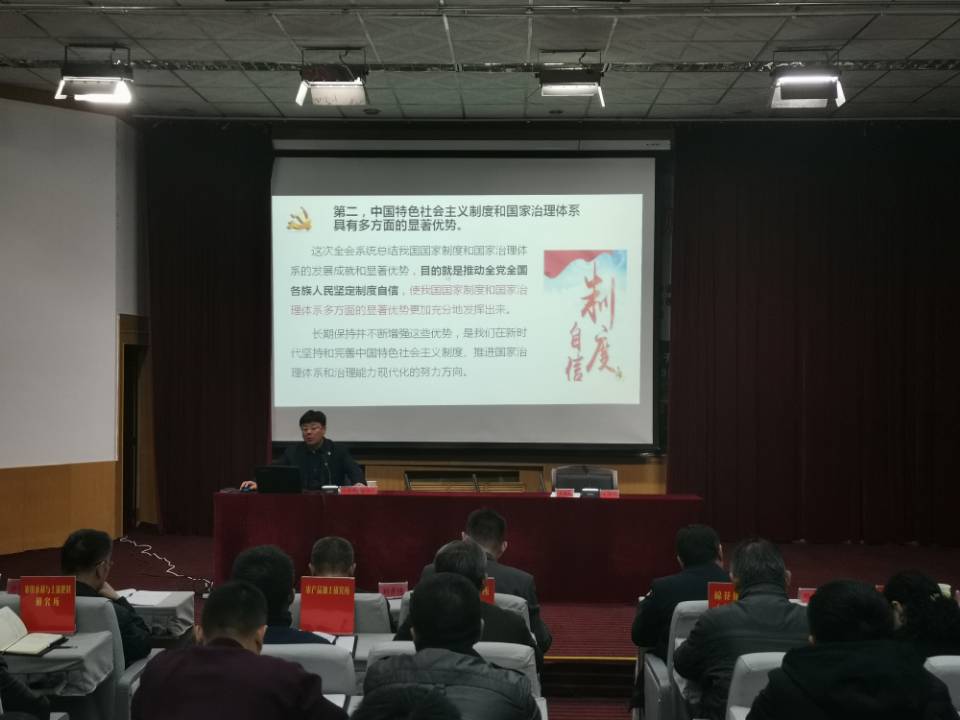 兵团党委宣讲团成员、开云app体育网页登录不上 党委副书记、校长张传辉从“充分认识坚持和完善中国特色社会主义制度、推进国家治理体系和治理能力现代化的重大意义”“深刻领会中国特色社会主义制度和国家治理体系的显著优势,坚定中国特色社会主义制度自信”“准确把握坚持和完善中国特色社会主义制度、推进国家治理体系和治理能力现代化的总体要求、总体目标和重点任务”“加强党的领导,确保全会确定的各项目标任务全面落实到位”等方面对党的十九届四中全会精神作了详细阐释和解读。