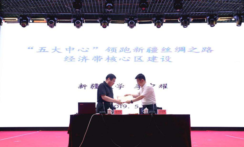 6月19日下午,新疆大学原党委书记李忠耀教授在行政楼B座报告厅作了题为《五大中心领跑丝绸之路经济带核心区建设》专题学术报告。报告会由赵光辉书记主持,干部、师生代表共1100余人听取了报告。