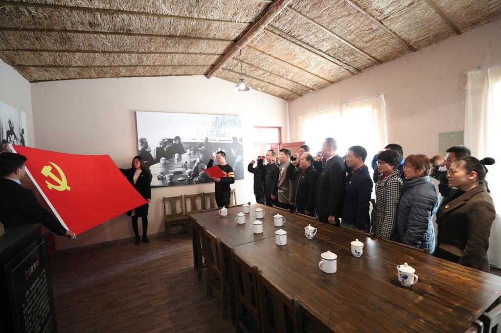 全体党员整齐站立,紧握右拳,庄严宣誓,铿锵有力的宣誓声是党员们与祖国共奋进的决心和意志的体现。