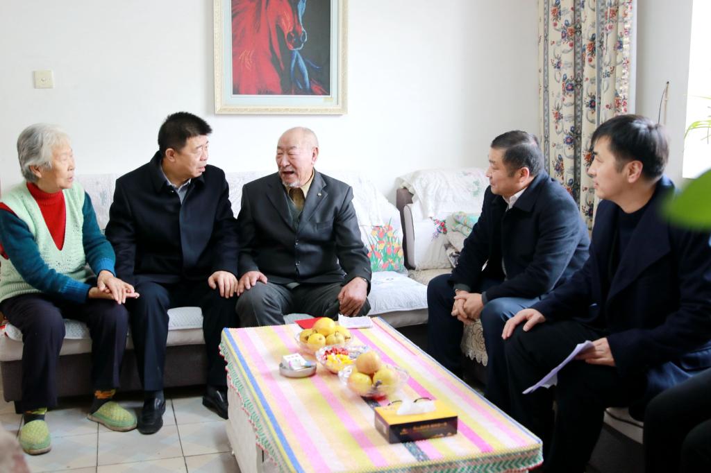在2020年春节来临之际,为加强党内激励关怀帮扶,发扬拥军优属的优良传统,将党和政府的关爱及时传递到退役老战士、现役军人、伤残军人及家属的心坎上,让他们度过一个喜庆祥和的新春佳节,1月20日上午,党委书记赵光辉,党委常委、副校长石长青一行,深入走访慰问军人军属家庭,为他们送上节日的问候和新春的祝福。党校办、人事处、人武部、宣传部有关部门领导陪同。